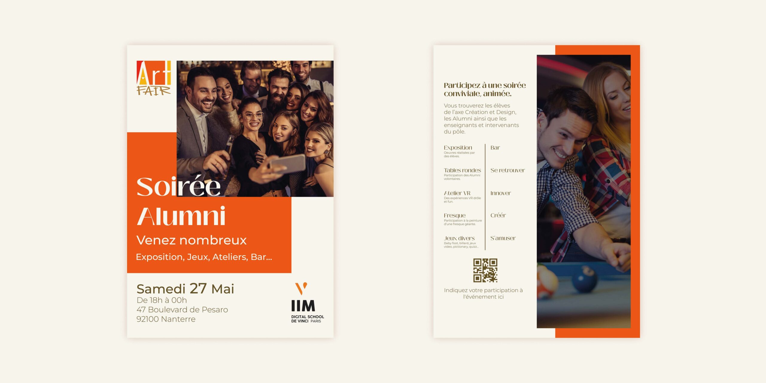 J’ai conçu une identité visuelle complète pour la « Soirée Alumni » organisée par l’IIM (Institut de l’Internet et du Multimédia). Ce projet comprenait :