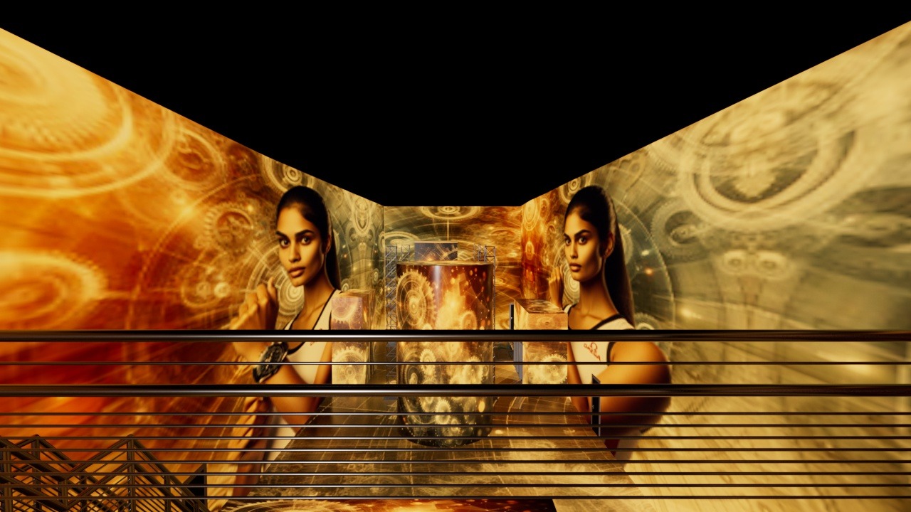 Créer une expérience immersive en 3D représentant l’exposition de la marque horlogère Omega à l’Atelier des Lumières, célèbre pour ses projections artistiques monumentales. Le but est de retranscrire l’univers esthétique de la marque dans un environnement interactif et visuellement captivant. On obtient ainsi une fusion entre l’univers horloger et l’art immersif. Il s’agit d’un travail de réalisme  notamment dans les reflets aquatiques et les jeux de lumière.