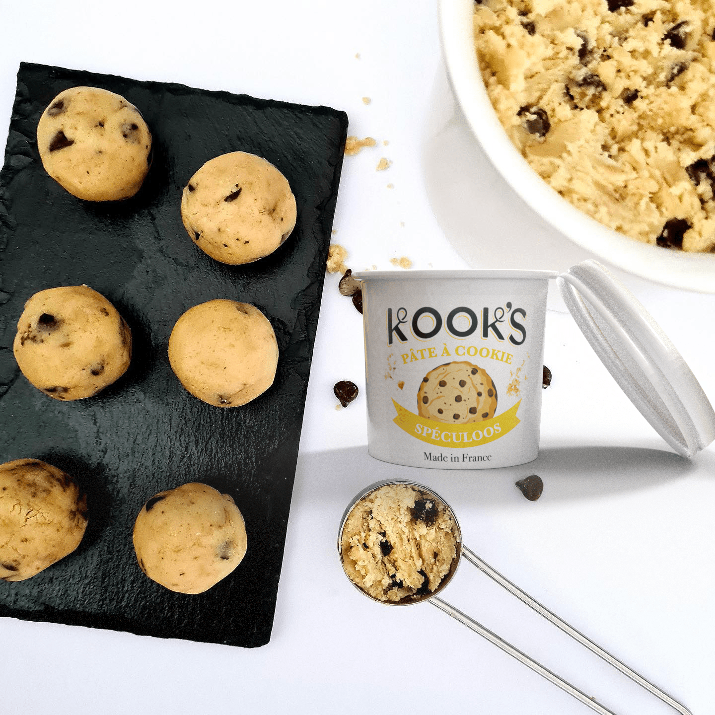 Ce projet a consisté à créer une série de visuels 3D autour des pots de pâte à cookie de la marque Kook’s, entreprise française spécialisée dans les pâtes à cookie prêtes à consommer.